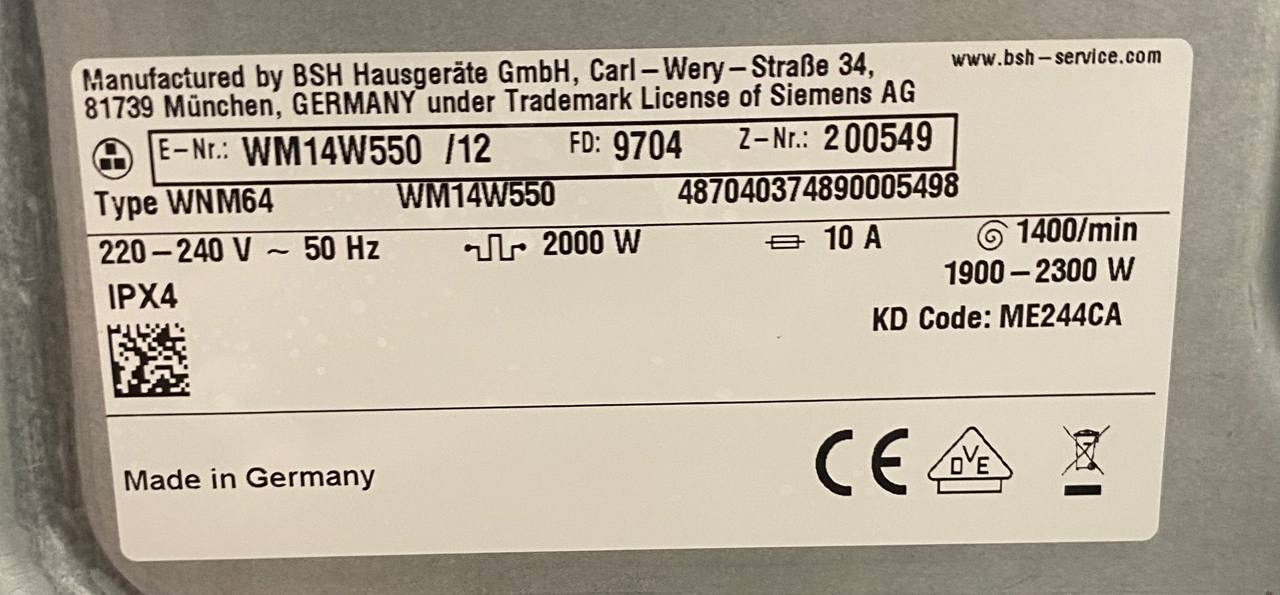Опис товару Вирішили купити б/у пральну машину? Вам ідеально підійде Пральна машина Siemens WM14W550 2300W 7кг sn 200549 Обновлённая за 20800. У нашому інтернет магазині пральні машини мають гарантію якості і здатні прослужити на порядок довше, ніж нові.