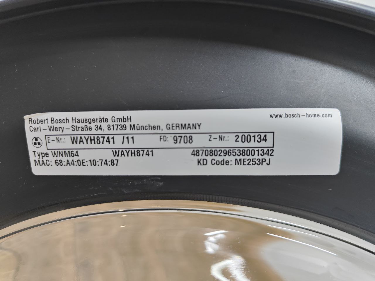 Пральна машина Bosch HomeProfessional WAYH8741 2300W 8кг sn 9708200134 WI FI Обновлённая