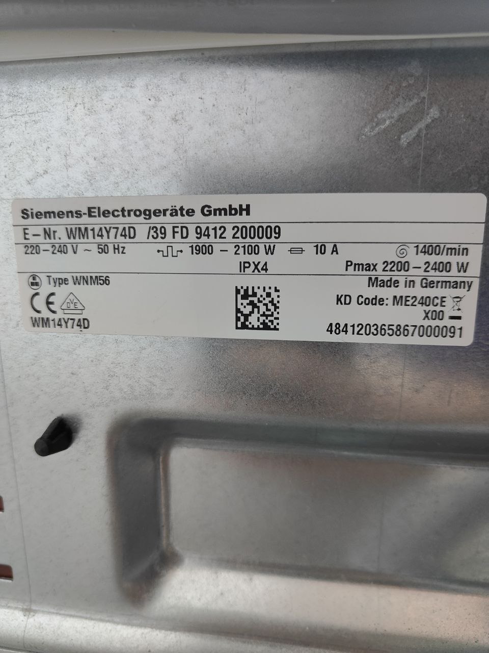 Опис товару Вирішили купити б/у пральну машину? Вам ідеально підійде Пральна машина Siemens iQ800 WM14Y74D 2100W 8кг sn 9412200009 Обновлённая за 23700. У нашому інтернет магазині пральні машини мають гарантію якості і здатні прослужити на порядок довше, ніж нові.