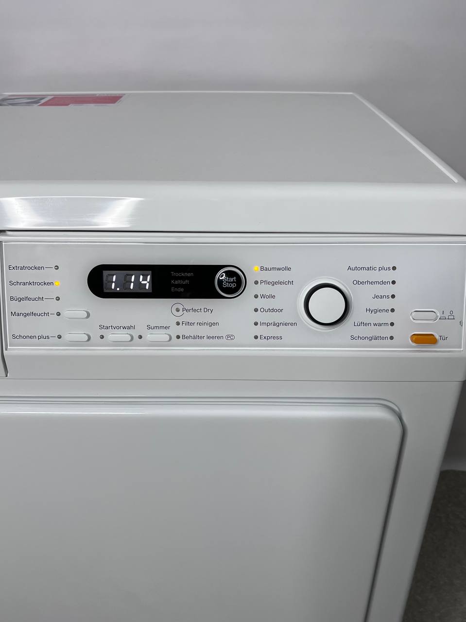 Устаткування конденсаторної сушарки вражає. Є дисплей часу, що залишився, попередній відбір часу старту до 24 годин, яскраве освітлення барабана і цілий спектр спеціальних програм.