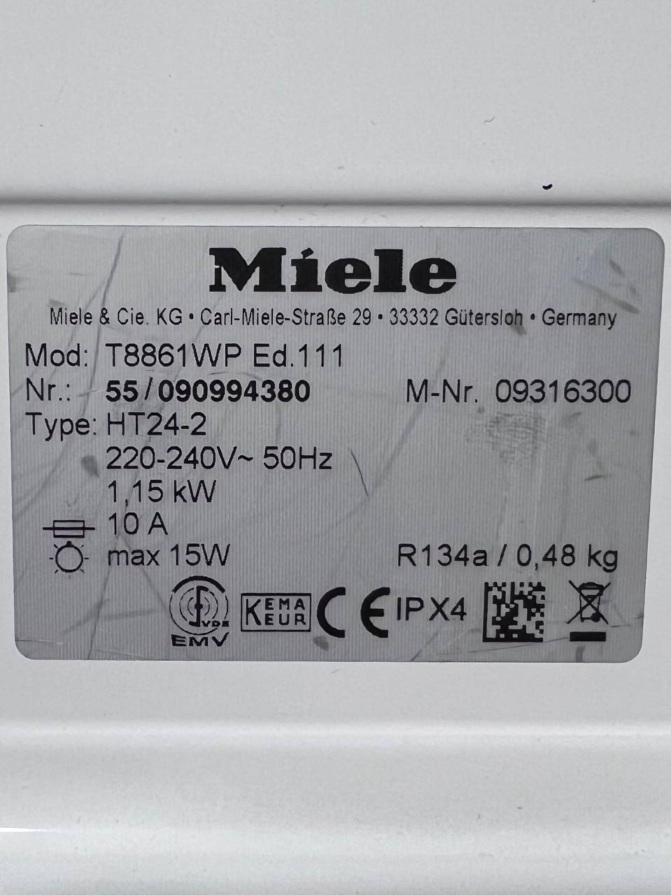 Miele T 8861 WP забезпечує найкращі споживчі цінності та високий рівень комфорту обладнання.