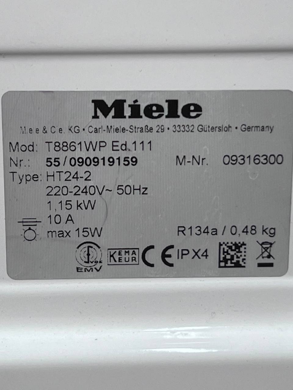 Miele T 8861 WP забезпечує найкращі споживчі цінності та високий рівень комфорту обладнання.