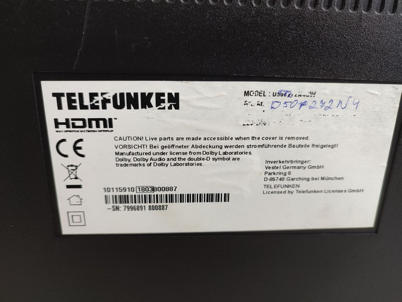 ТБ 50 Telefunken D50F272N4 Full HD Обновлённая