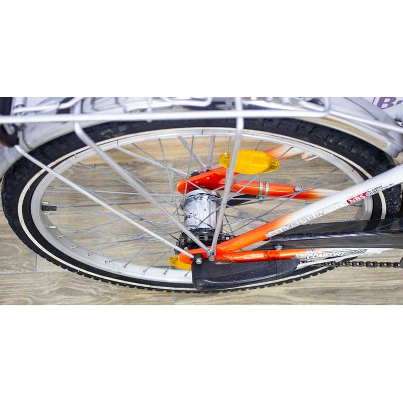 Задня втулка Sturmey Archer. Перемикач (шифтер) Sturmey Archer. Гальма Sallon v-brake. В наявності полноразмарные металеві щитки, багажник і задній ліхтар.